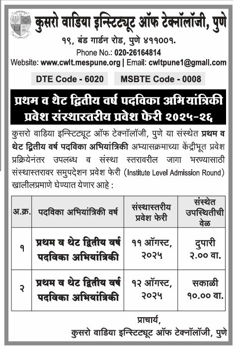 Course Name Diploma in Computer EngineeringDiploma in E & TC EngineeringDiploma in Mechanical EngineeringDiploma in Civil EngineeringDiploma in Electrical Engineering