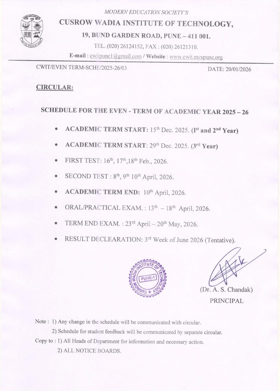 | 5 | Dr. A.S. Chandak | Member Secretary | HOD, E & TC, Academic Co-ordinator, CWIT, Pune. |